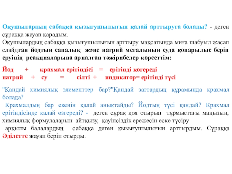 Слайд 44Оқушылардың сабаққа қызығушылығын қалай арттыруға болады? - деген сұраққа жауап қарадым.