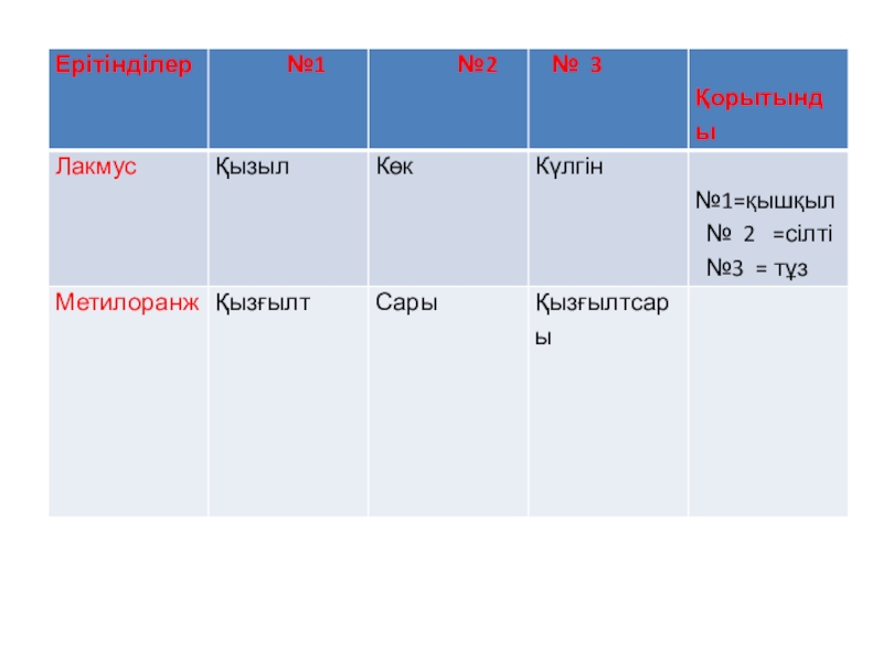 Слайд 53 Топқа нөмірленген үш ерітінді, әр түрлі индикаторлар