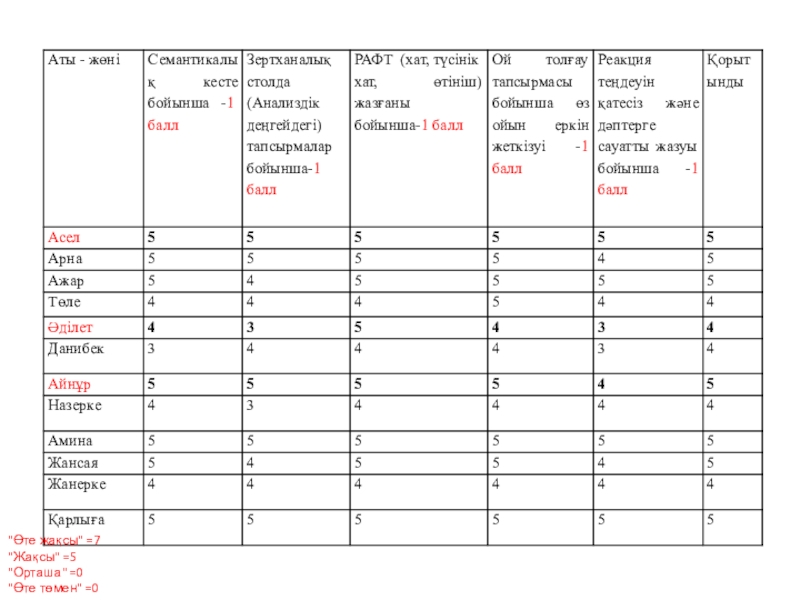 "Өте жақсы" =7