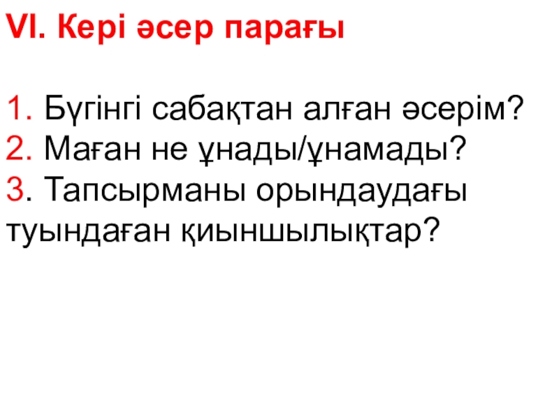 Слайд 37VI. Кері әсер парағы