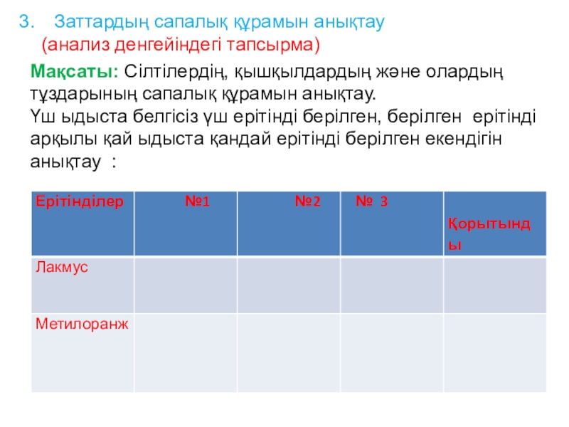 Слайд 14Заттардың сапалық құрамын анықтау