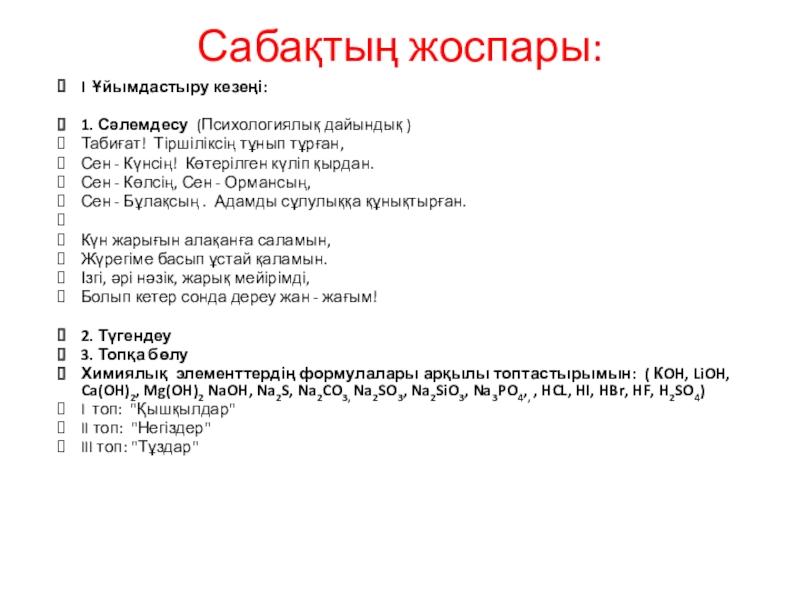 I Ұйымдастыру кезеңі: