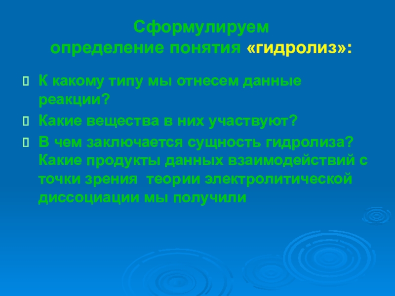 Слайд 19Сформулируем определение понятия «гидролиз»: