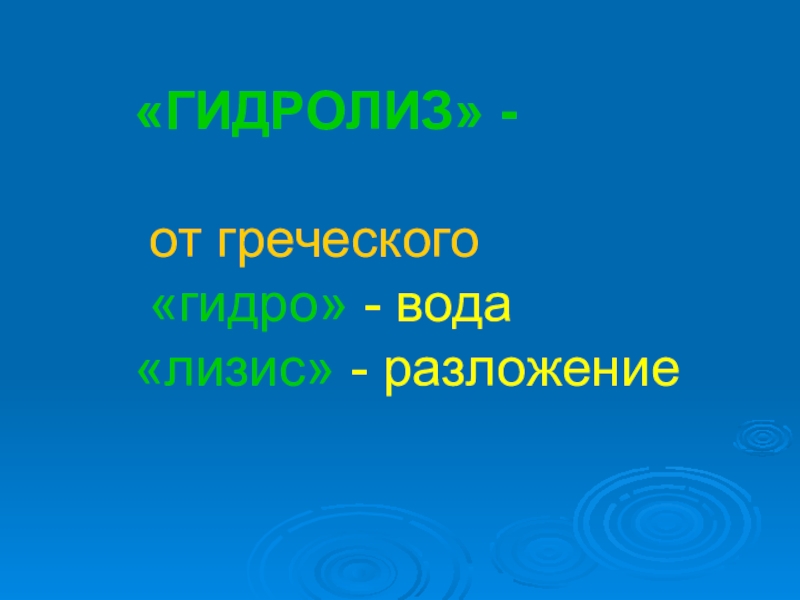 Слайд 5«ГИДРОЛИЗ» - от греческого «гидро» - вода «лизис» - разложение