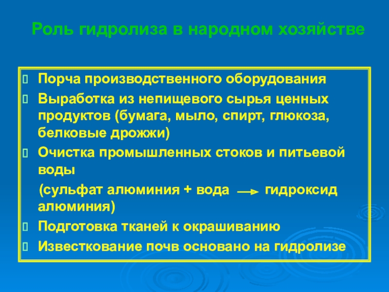 Слайд 25Роль гидролиза в народном хозяйстве