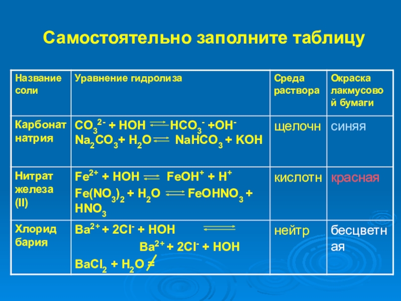 записывать уравнения реакций гидролиза