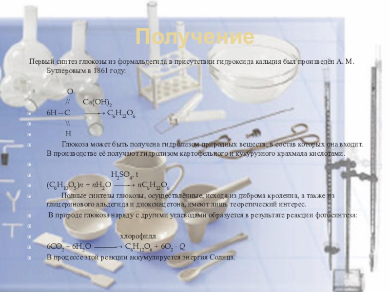 Первый синтез глюкозы из формальдегида в присутствии гидроксида кальция был произведён