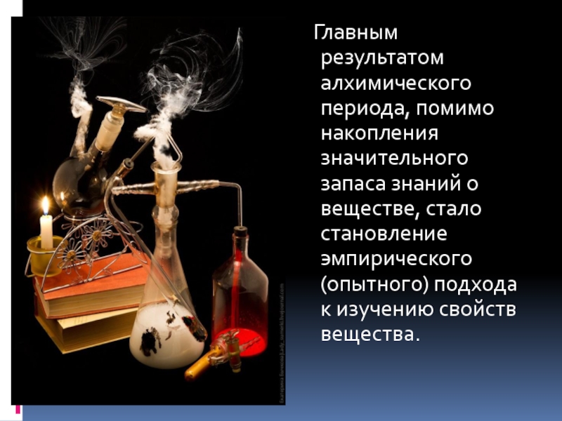 Слайд 57 Главным результатом алхимического периода, помимо накопления значительного запаса знаний