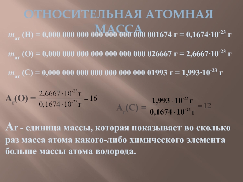 mат (C) = 0,000 000 000 000 000 000 000 01993 г = 1,993∙10-23 г