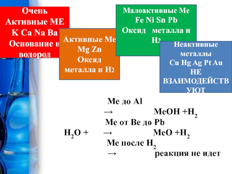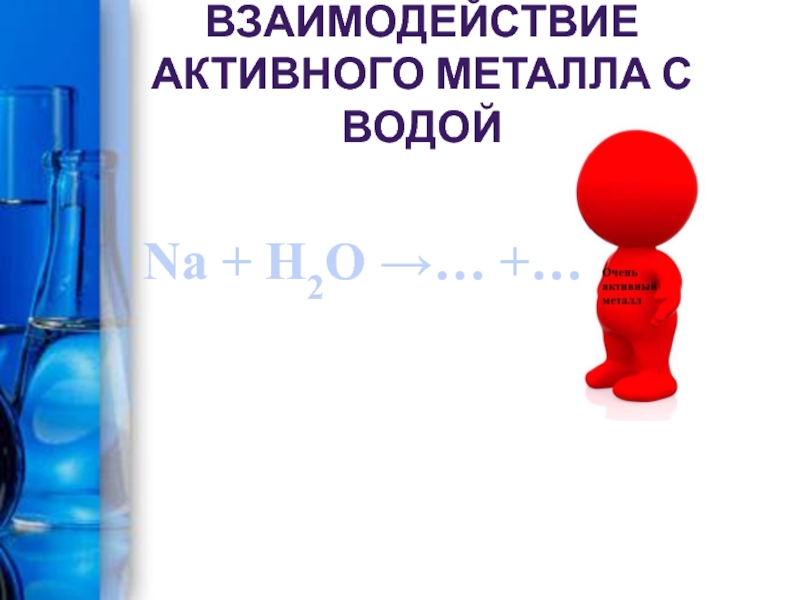 4 Вода взаимодействует с щелочными и щелочноземельными металлами с образованием водорода и щелочи