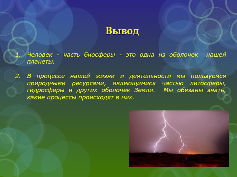 процессе нашей жизни и деятельности мы пользуемся природными ресурсами, являющимися частью литосферы, гидросферы и других оболочек Земли. Мы обязаны знать, какие процессы происходят в них.