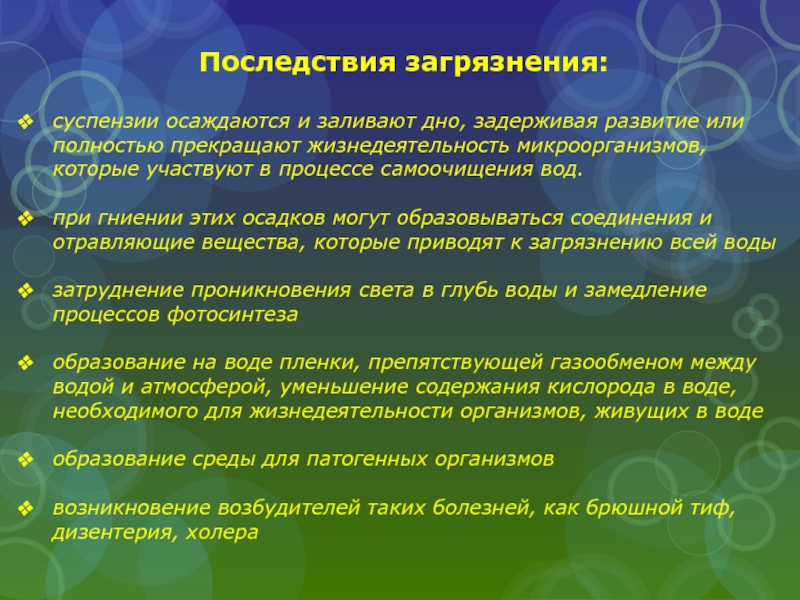 при гниении этих осадков могут образовываться соединения и отравляющие вещества, которые приводят к загрязнению всей воды
