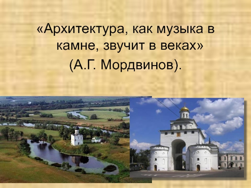 «Архитектура, как музыка в камне, звучит в веках» (А.Г. Мордвинов).
