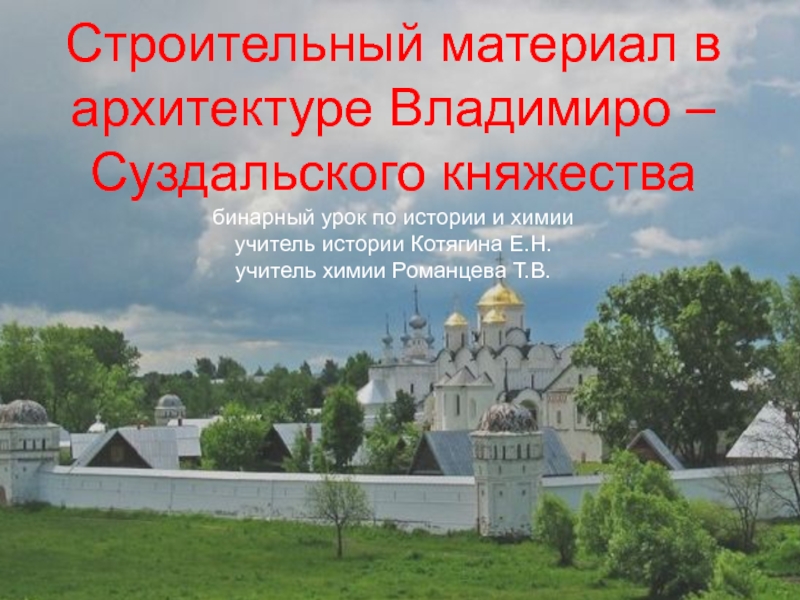 Презентация, доклад по химии и истории на тему Строительный материал в архитектуре Владимиро-Суздальского княжества (9 класс)