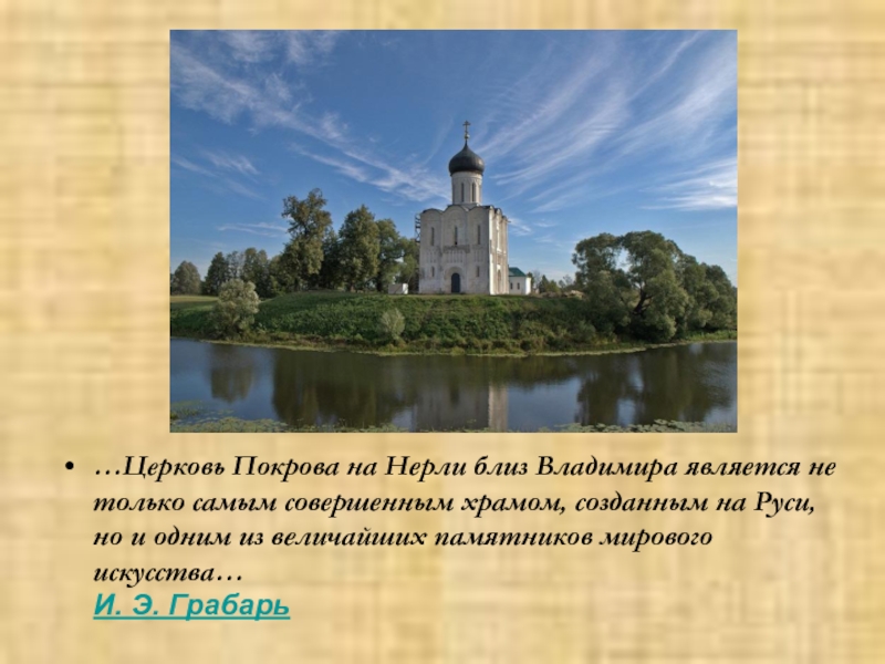 …Церковь Покрова на Нерли близ Владимира является не только самым совершенным храмом,