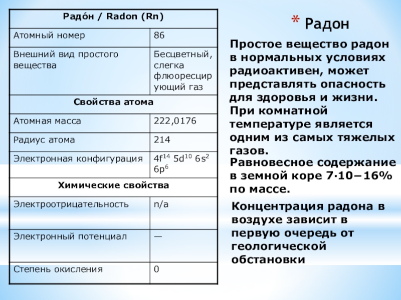 Концентрация радона в воздухе зависит в первую очередь от геологической обстановки