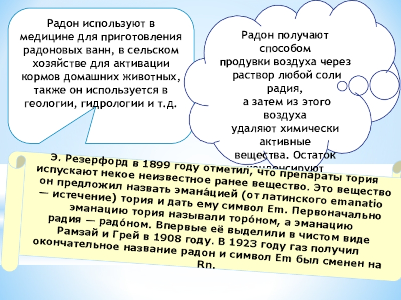 Э. Резерфорд в 1899 году отметил, что препараты тория