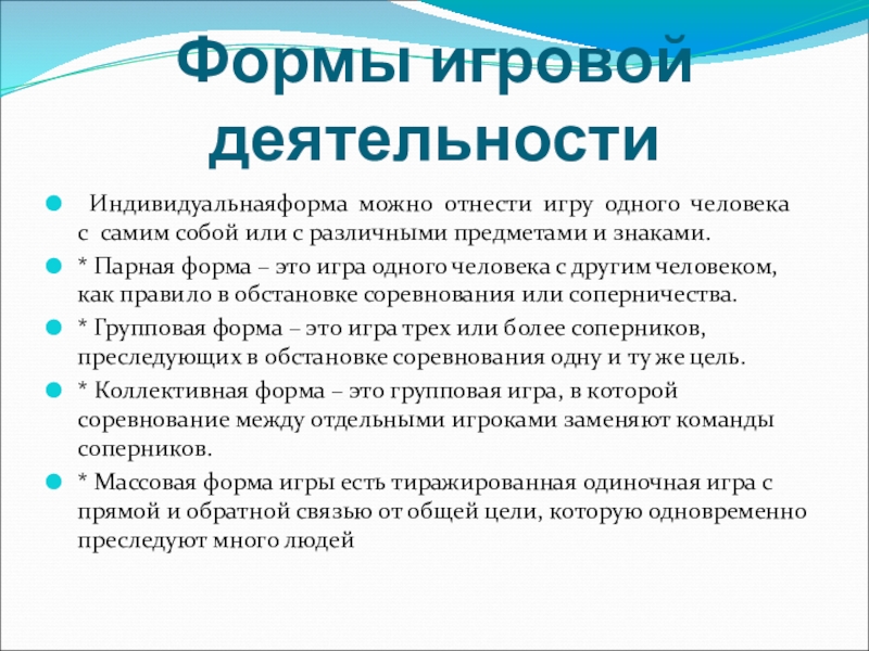 * Групповая форма – это игра трех или более соперников, преследующих в обстановке соревнования одну и ту же цель.