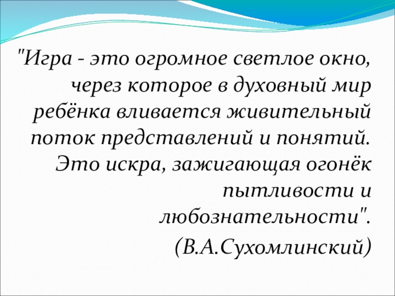 ребёнка вливается живительный поток представлений и понятий. Это искра, зажигающая огонёк пытливости и любознательности".