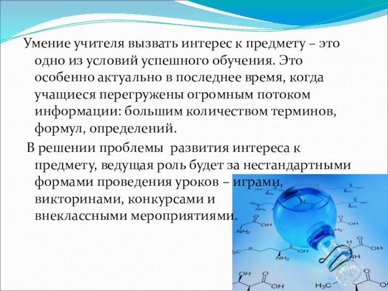 Слайд 3Умение учителя вызвать интерес к предмету – это одно из условий