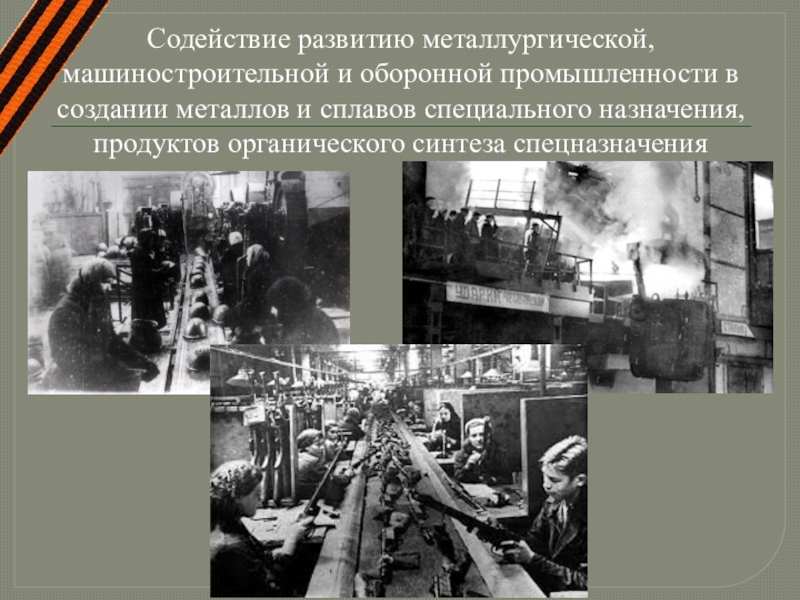 Слайд 6Содействие развитию металлургической, машиностроительной и оборонной промышленности в создании металлов и