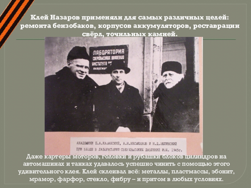 Слайд 18Когда началась война, он посоветовал применять клей для ремонта боевой техники.