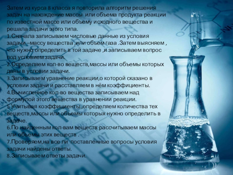 Слайд 12Затем из курса 8 класса я повторила алгоритм решения задач на