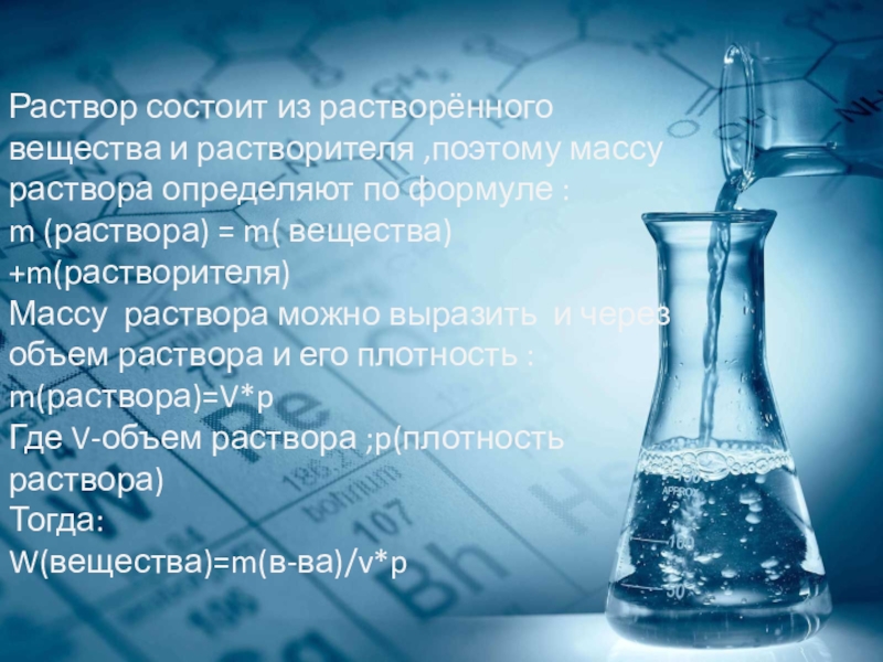 Слайд 6Раствор состоит из растворённого вещества и растворителя ,поэтому массу раствора определяют