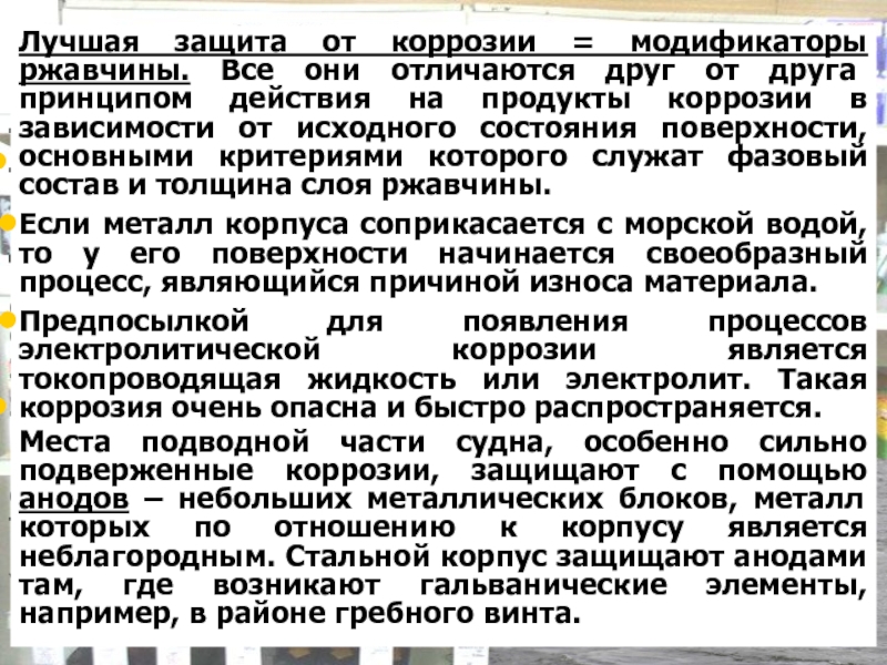 Если металл корпуса соприкасается с морской водой, то у его поверхности начинается своеобразный процесс, являющийся причиной износа материала.
