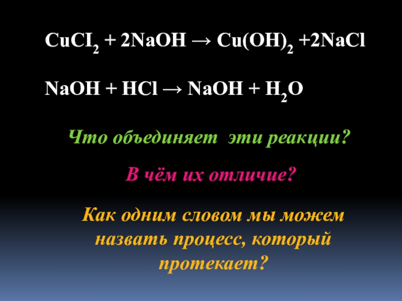 CuCI2 + 2NaOH → Cu(OH)2 +2NaCl