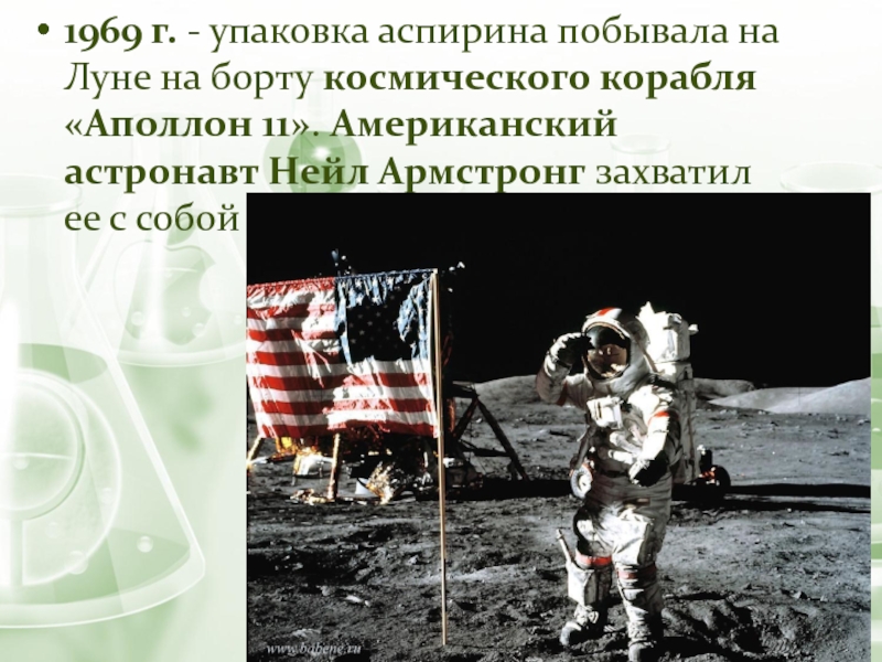 Слайд 441969 г. - упаковка аспирина побывала на Луне на борту космического
