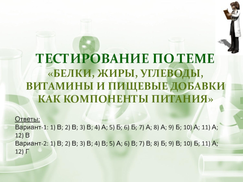 Вариант-2: 1) В; 2) В; 3) В; 4) В; 5) А; 6) В; 7) В; 8) Б; 9) В; 10) Б; 11) А; 12) Г