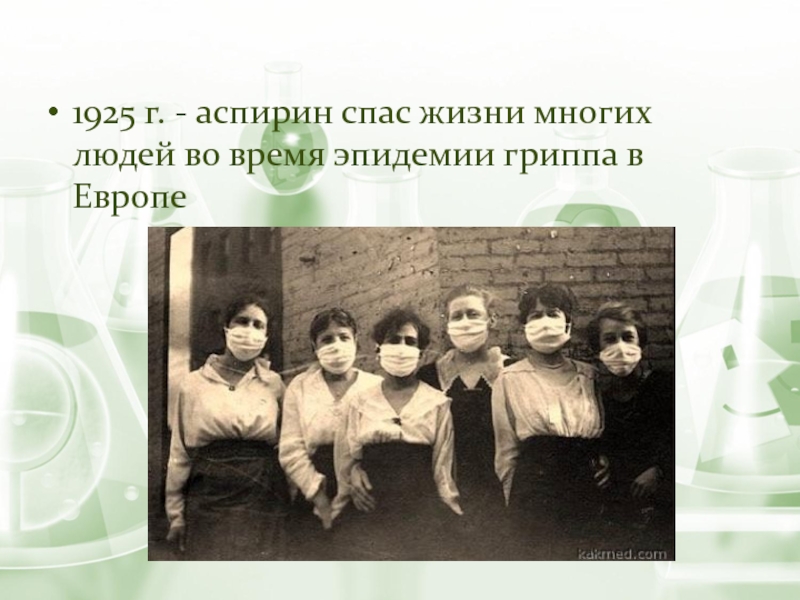 Слайд 411925 г. - аспирин спас жизни многих людей во время эпидемии