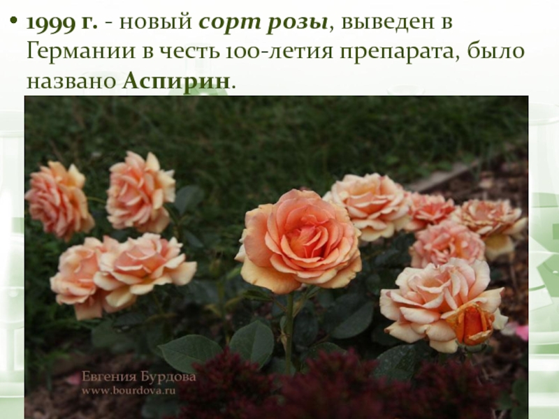 Слайд 481999 г. - новый сорт розы, выведен в Германии в честь