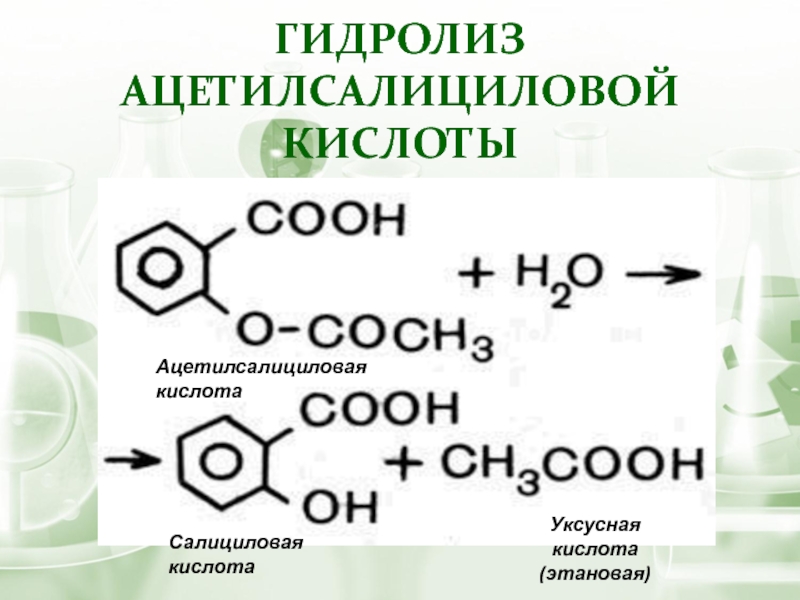 Слайд 34ГИДРОЛИЗ АЦЕТИЛСАЛИЦИЛОВОЙ КИСЛОТЫ