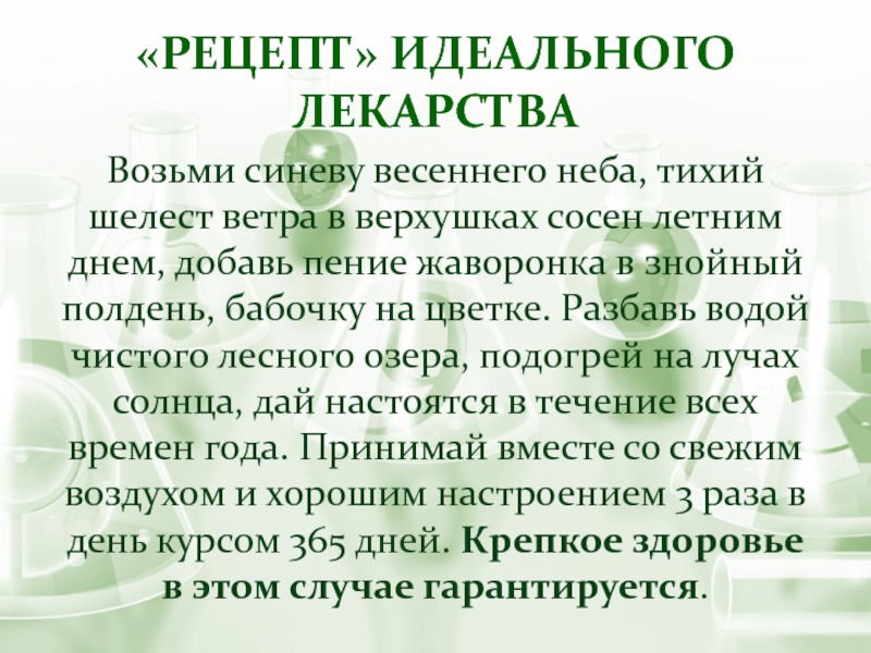 Слайд 54«РЕЦЕПТ» ИДЕАЛЬНОГО ЛЕКАРСТВА