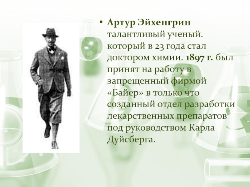Слайд 27Артур Эйхенгрин талантливый ученый. который в 23 года стал доктором химии.