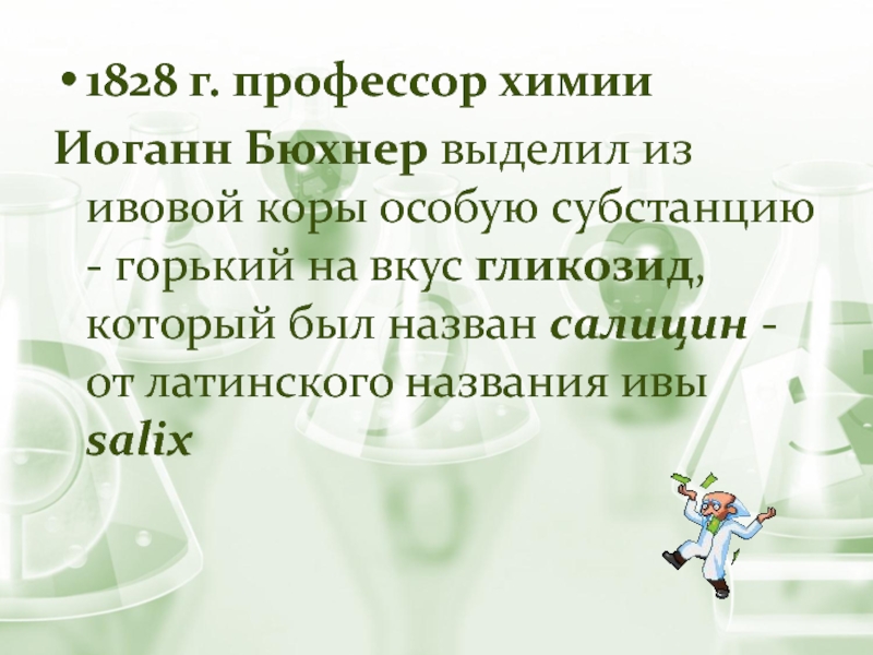 субстанцию - горький на вкус гликозид, который был назван салицин - от латинского названия ивы sаliх