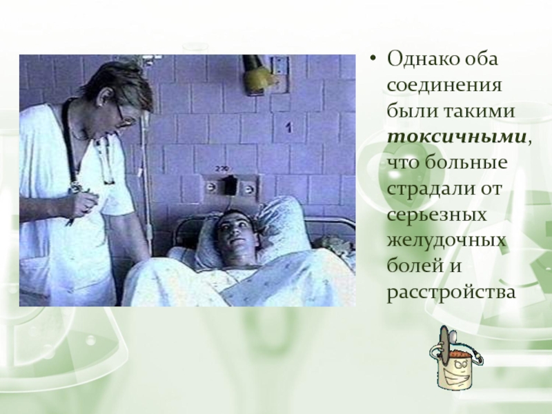 Слайд 25Однако оба соединения были такими токсичными, что больные страдали от серьезных