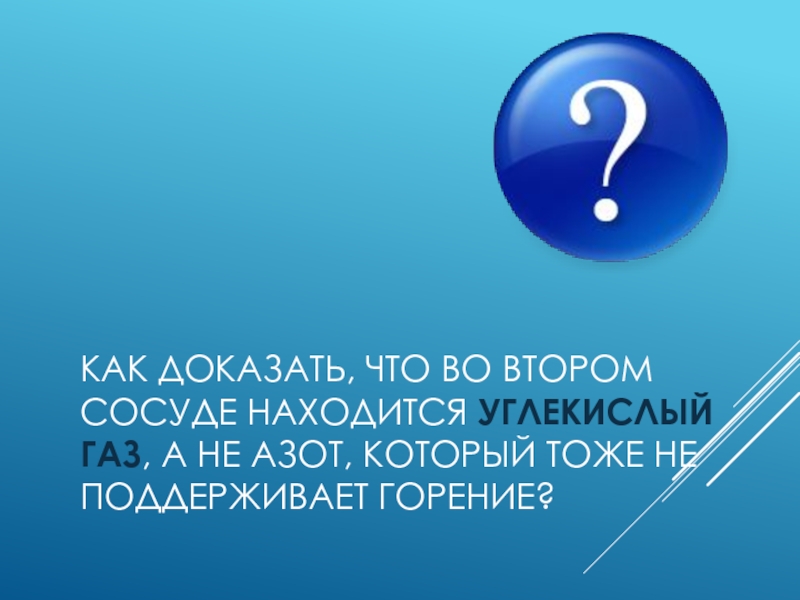 Слайд 8КАК ДОКАЗАТЬ, ЧТО ВО ВТОРОМ СОСУДЕ НАХОДИТСЯ УГЛЕКИСЛЫЙ ГАЗ, А НЕ
