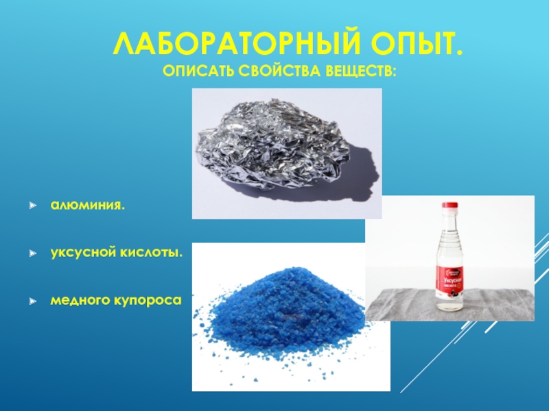 ОПИСАТЬ СВОЙСТВА ВЕЩЕСТВ: