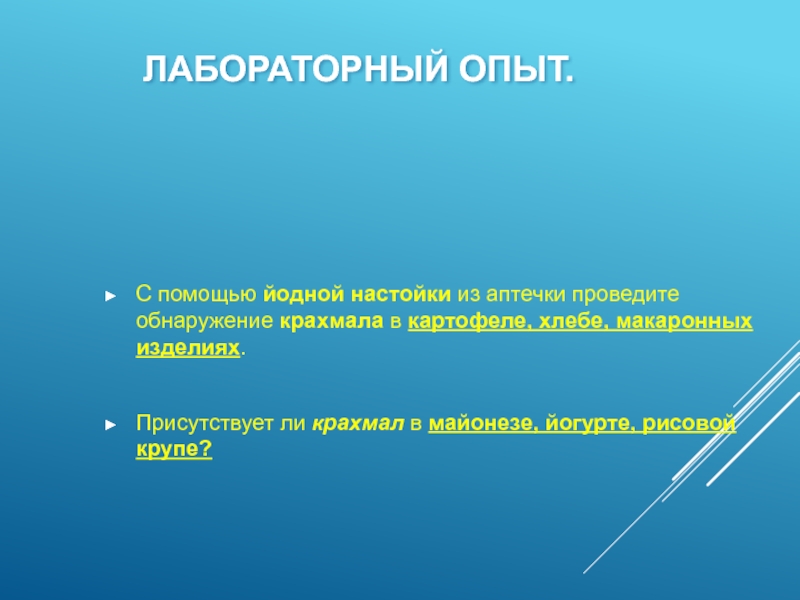 С помощью йодной настойки из аптечки проведите обнаружение крахмала в