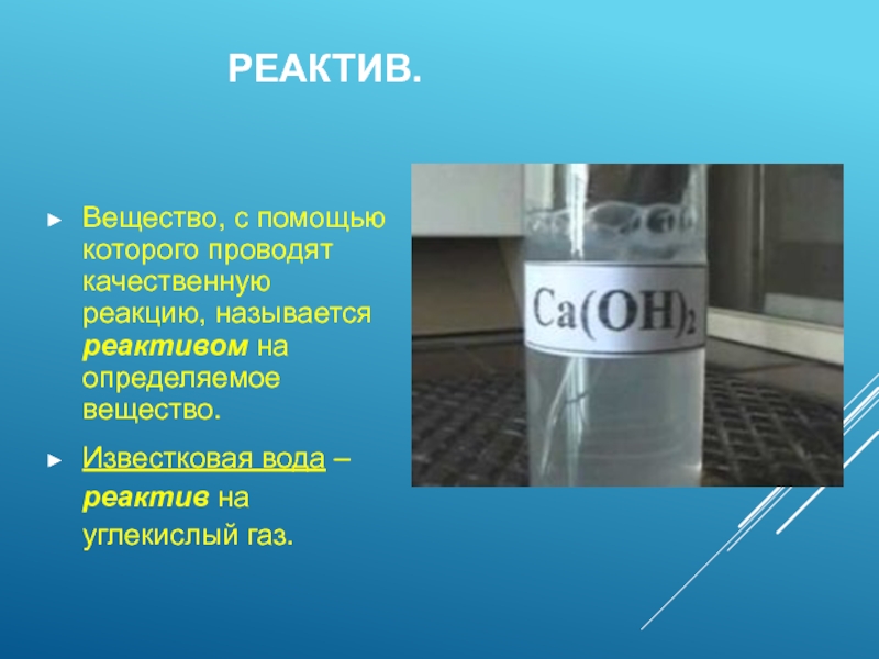 примеры, когда известковая вода является определяемым веществом, а когда – реактивом?