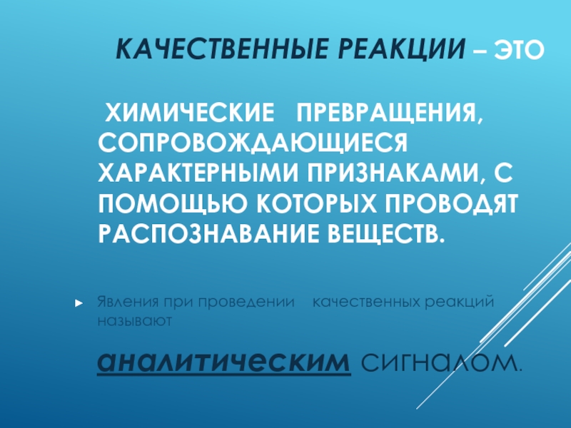 Слайд 9 КАЧЕСТВЕННЫЕ РЕАКЦИИ – ЭТО