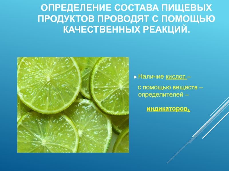 Слайд 13ОПРЕДЕЛЕНИЕ СОСТАВА ПИЩЕВЫХ ПРОДУКТОВ ПРОВОДЯТ С ПОМОЩЬЮ КАЧЕСТВЕННЫХ РЕАКЦИЙ.