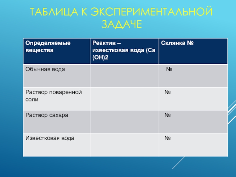 Слайд 18ТАБЛИЦА К ЭКСПЕРИМЕНТАЛЬНОЙ ЗАДАЧЕ