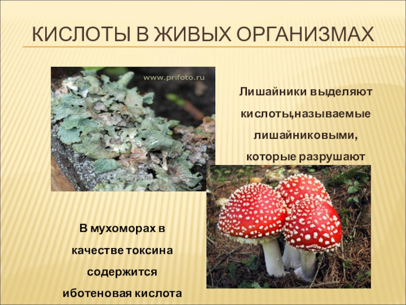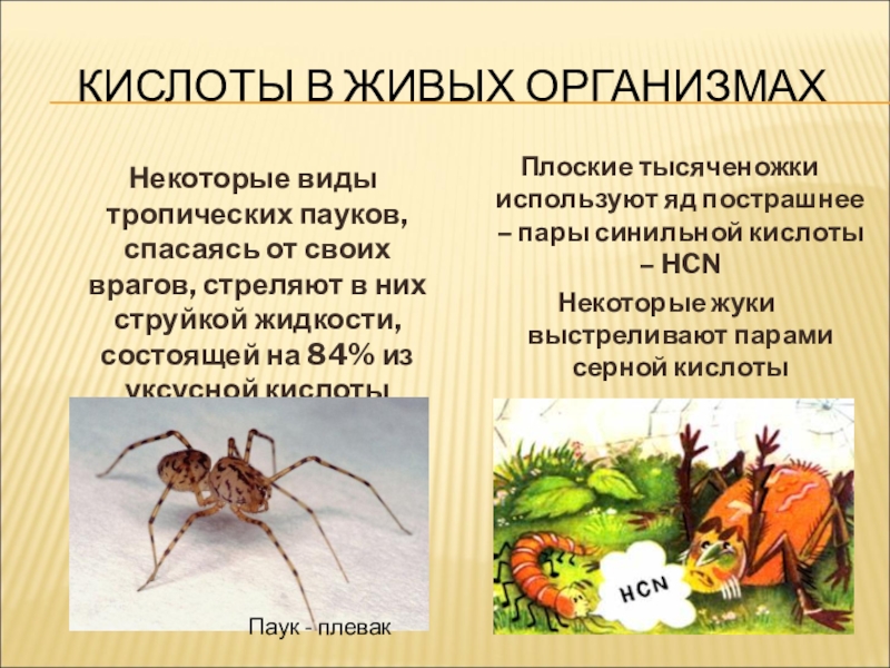 Слайд 26КИСЛОТЫ В ЖИВЫХ ОРГАНИЗМАХ