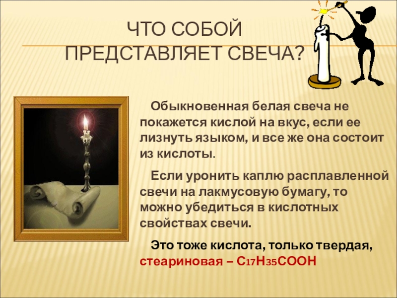 Слайд 46ЧТО СОБОЙ ПРЕДСТАВЛЯЕТ СВЕЧА?