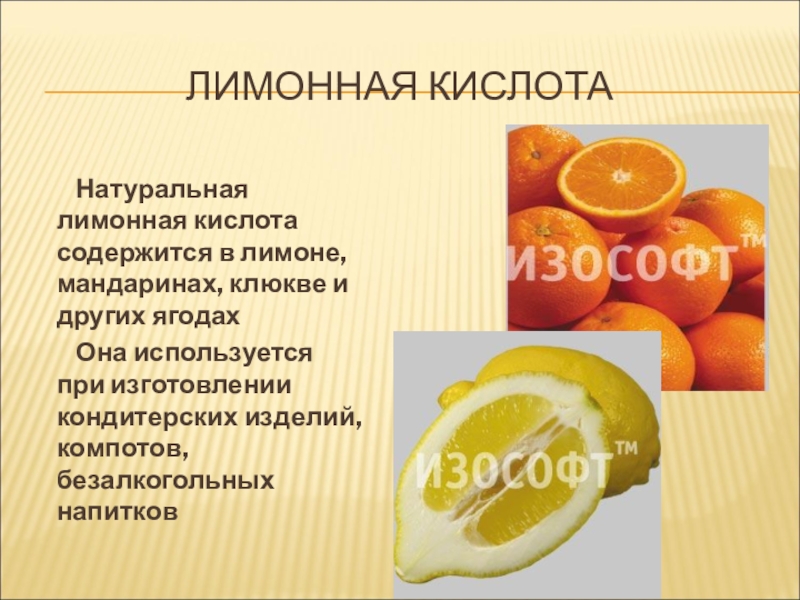 Слайд 34ЛИМОННАЯ КИСЛОТА