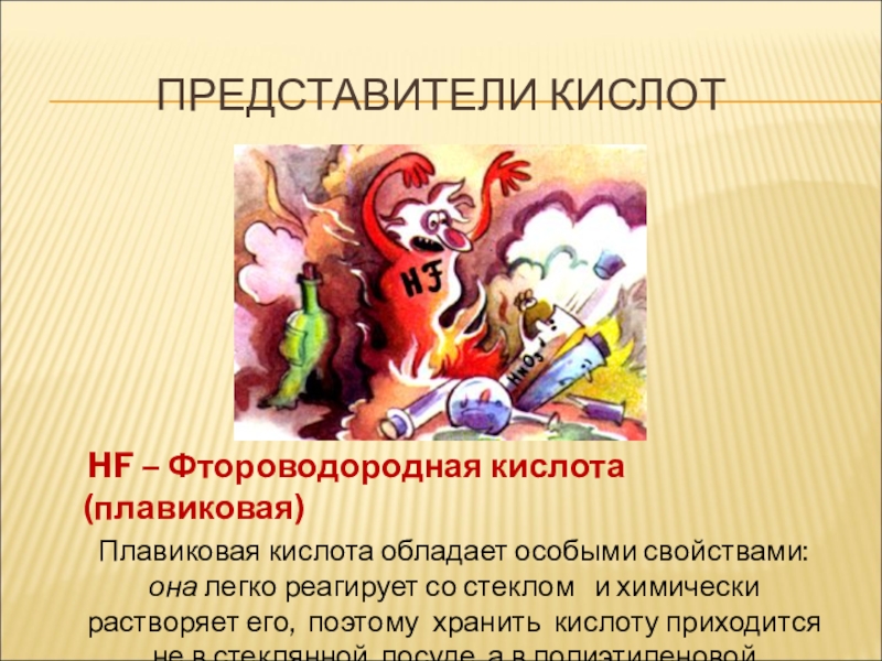 Слайд 43ПРЕДСТАВИТЕЛИ КИСЛОТ
